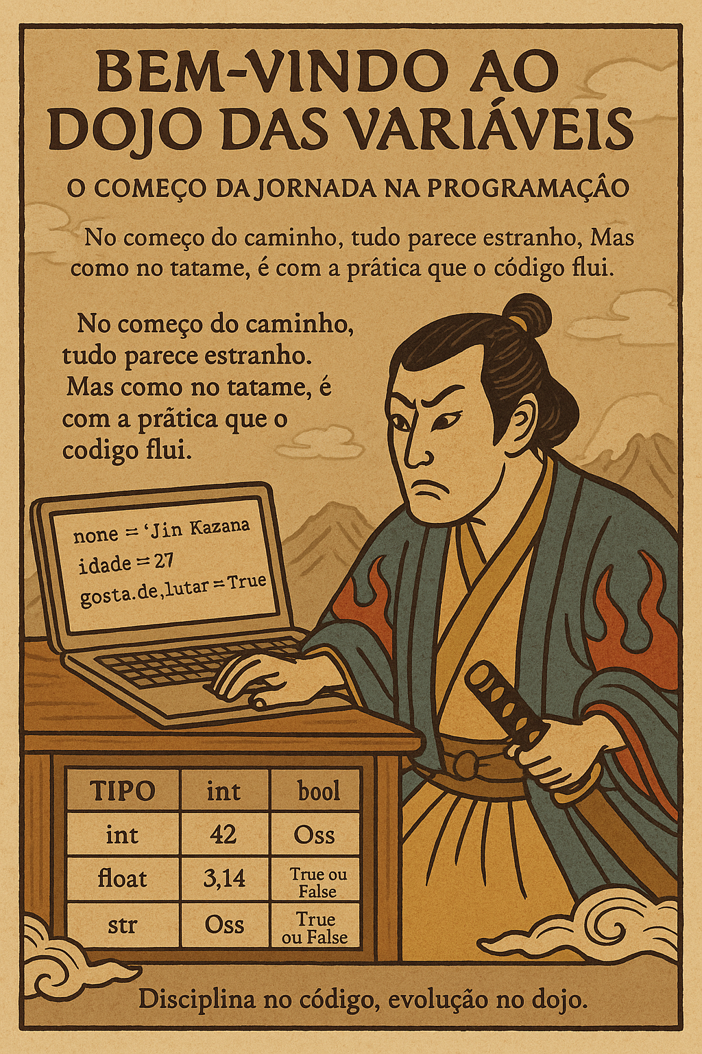 Quando você entra no mundo da programação, entra também em um novo idioma — uma nova forma de pensar. E nesse dojô de ideias, as variáveis são como faixas brancas: simples, humildes, mas essenciais.
