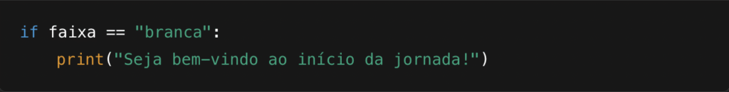 Condicionais são como decisões no rola: “Se ele vier por cima, faço guarda. Se por baixo, passo”. Em código, usamos o if: